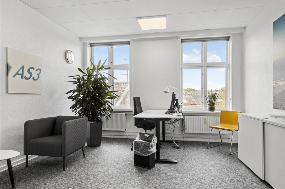 Lejemålet er indrettet med 3 kontorer, 1 mindre kontor og 2 gode mødelokale, godt stort receptionsområde, køkken med spiseplads samt et badeværelse.