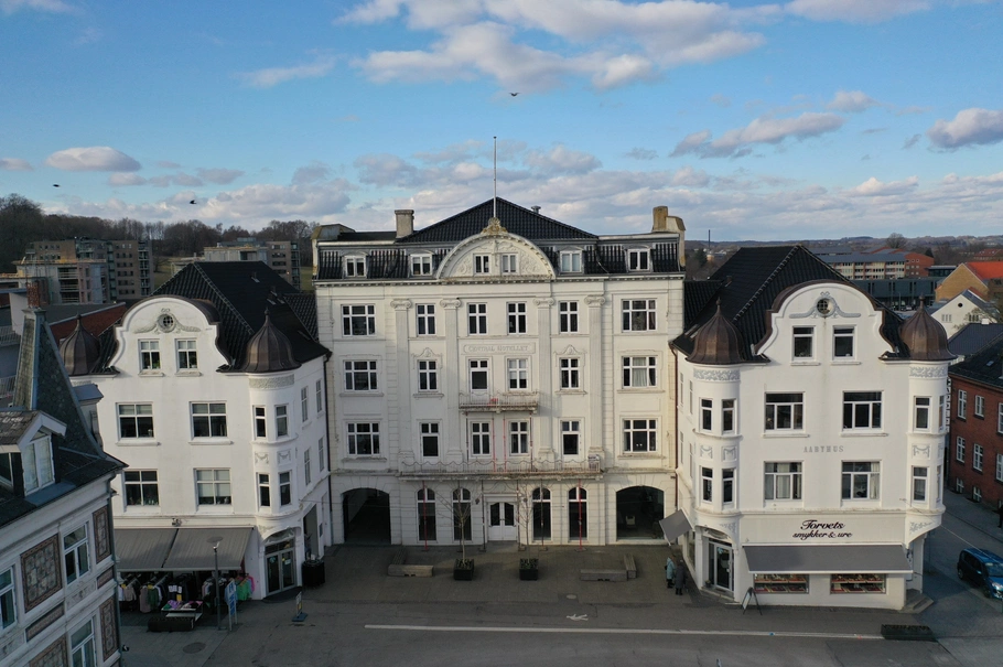 Lejemålet er en del af en af de mest markante og flotteste bygninger i Odder, "Centralhotellet".