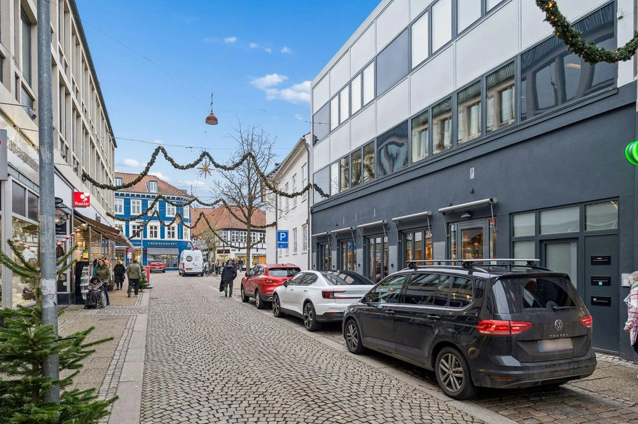 Om placeringen er der kun godt at sige. Det er en A+ beliggenhed med det gamle rådhus og Rådhustorvet som naboer. Beliggenheden er i hjertet i Randers midtby, hvor midtbyens gader mødes, og hvor der er en naturlig stor trafik både fra gående og kørende. Rådhustorvet er et aktivt torv med løbende aktiviteter fra Cityforeningen og andre aktører.