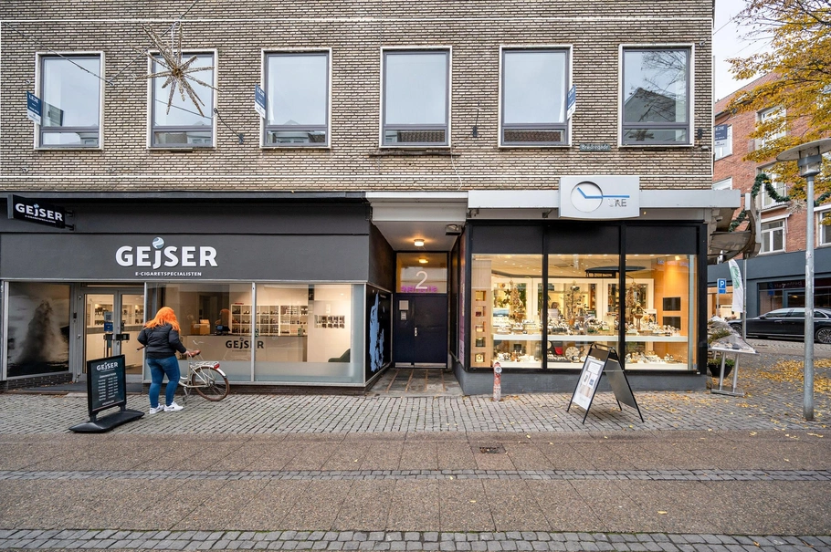 Kontorlejemål på 1. sal i pæn og velbeliggende byejendom med butikker, kontorlejemål og boliger.