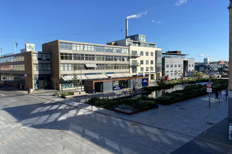 Lejemålet er beliggende på hjørnet af Dytmærsken og Østervold, der er et meget befærdet sted i Randers midtby.