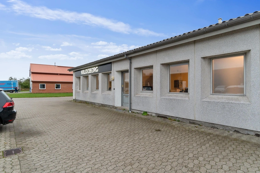 Udenomsarealer: Udenomsarealet består af stenbefæstet parkeringsareal foran og på bagsiden af ejendommen. Der er let tilgængelige muligheder for af- og pålæsning af lastbiler mv. på bagsiden af ejendommen.