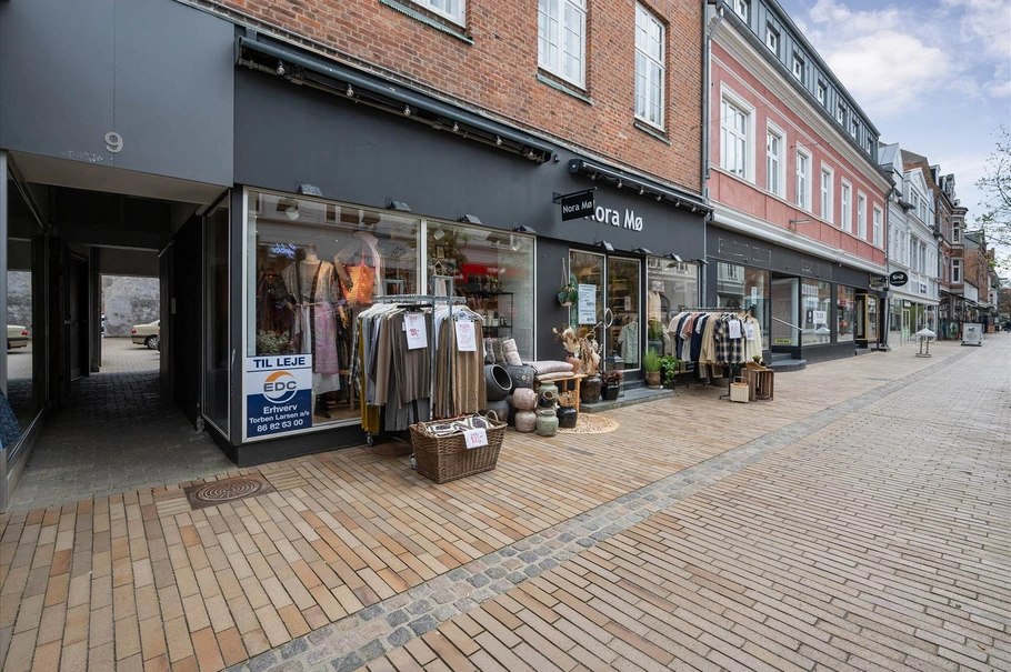 Synlig og flot butik på gågaden i Silkeborg