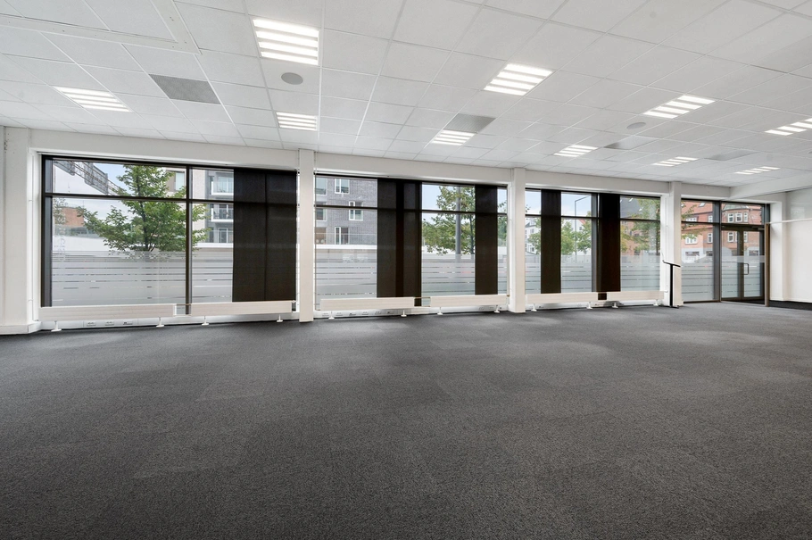 De flotte butikslokaler på 347 m² i en imponerende, ny ejendom fra 2010, kan nemt indrettes efter behov. Udlejer indgår gerne i en dialog omkring ombygning til jeres specifikke behov. Lokalerne er velegnede til en bred vifte af forretningskoncepter og er tidligere anvendt af Handelsbanken. Pt. indrettet med et stort lyst og rummeligt butikslokale samt kontorer og depotrum. Flere vægge er lette skillevægge og kan tilpasses, så det passer nøjagtigt til jeres specifikke behov mht. indretning og funktionalitet. Derudover er der separat køkken, samt to toiletter - det ene med bad.