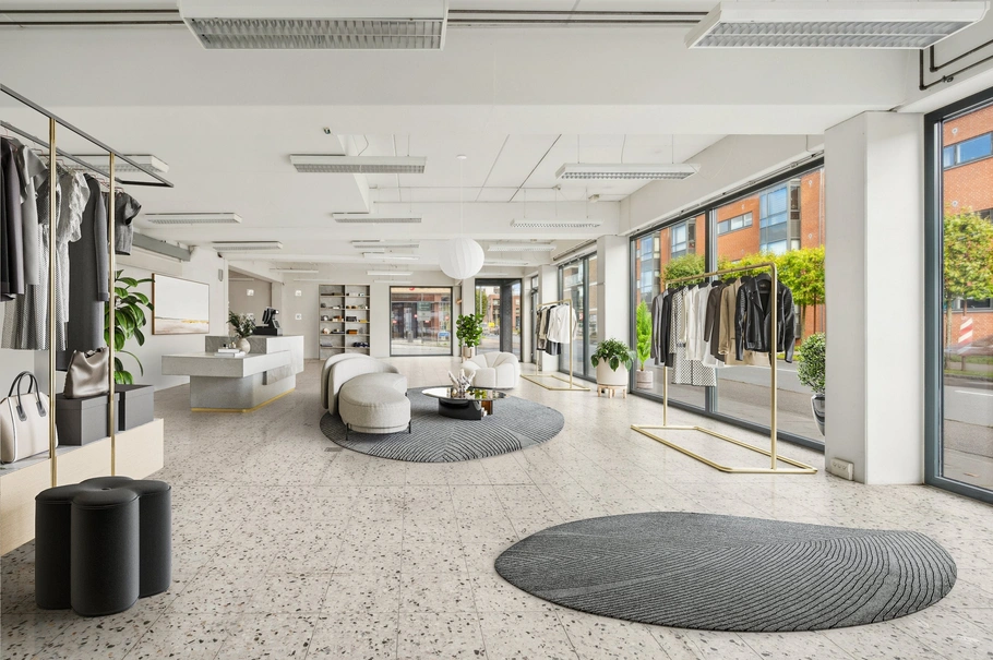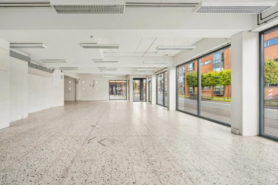 Lejemålet på 321 m² har senest været anvendt til minimarked, og er derfor indretter med klinkegulv i det store butikslokale, som fremstår lyst og indbydende med de store glaspartier og cirka 3 meter til betonloft. I lejemålets vinkel kan der indrettes lagerlokale med mulighed for vareindlevering fra baggård. Bagerst i lokalet findes også passende mandskabsfaciliteter. I butikkens hjørne er der dobbeltdør med overdækket plads til udstilling af gadevarer.