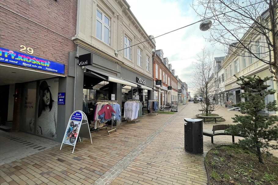Præsentable butikslokaler i gågaden. Stor rummelig butik med højt til loftet og en god behagelig grundbelysning.