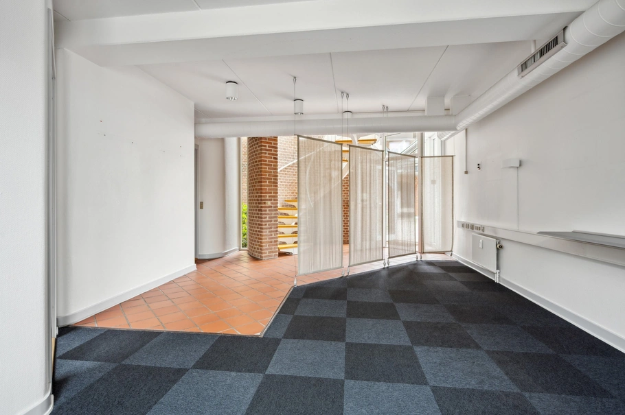 Lejemålet er i to plan, som begge er fulde af potentiale og muligheder for at skabe et fantastisk arbejdsmiljø. Underetagen byder på en indbydende reception/modtagelse, hvorfra gæster og kunder kan få en hjertelig velkomst. Ved siden af modtagelsesområdet er der et kontor/mødelokale. Herudover disponerer underetagen over et mindre the-køkken, personalerum med udgang til terrasse, hvor frokosten kan nydes. Endvidere toilet.