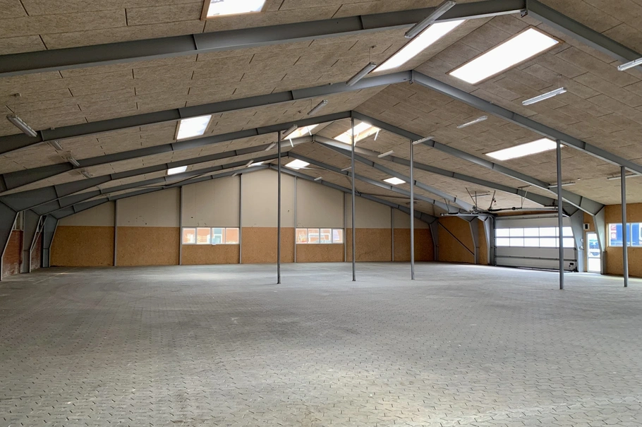Her er tale om en fuldstændig regulær hal, uden opdelinger og andre rum, på 1.309 m², som således er 100% ideél til lager og opmagasinering.