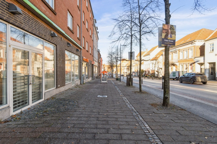 Lejemålet er beliggende i Adelgade - byens primære butiks-og gågade, med store vinduespartier, der giver god synlighed til de mange forbipasserende.