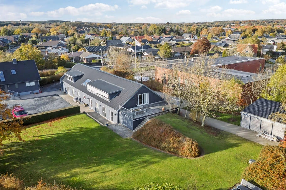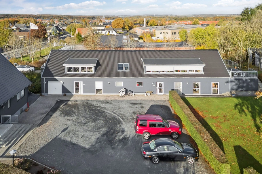 På Løgtenvej 41, centralt beliggende i Hornslet, har du mulighed for at blive en del af et hyggeligt kontorfællesskab.