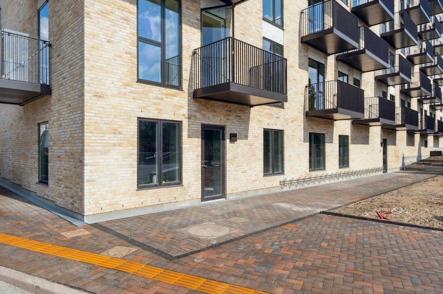 Lejemålet er beliggende i det nyopførte Strandby Høje, hvor der er opført 337 boliger. Bebyggelsen er beliggende lige bag ”Portalen”, ved busholdepladsen i tilknytning til Hundige station.