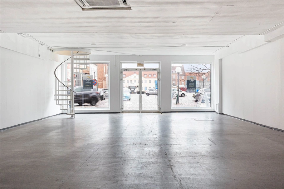 Den rummelige stueetage på 294 m² byder på et stort og regulært butikslokale med ventilationssystem. Adgangen til et mindre, lukket skur i enden af lejemålet og en baggård tilbyder fine logistikmuligheder. Flere strømstik langs med stuen skaber ydermere fleksibilitet til forskellige layoutmuligheder. Fyrrummet i enden mod baggården huser en gammel olietank. Det bemærkes, at der i stueetagen ikke er etableret toilet- eller køkkenfaciliteter, hvilket kan være en overvejelse for potentielle lejere. På 1. sal finder man disse nødvendige faciliteter.