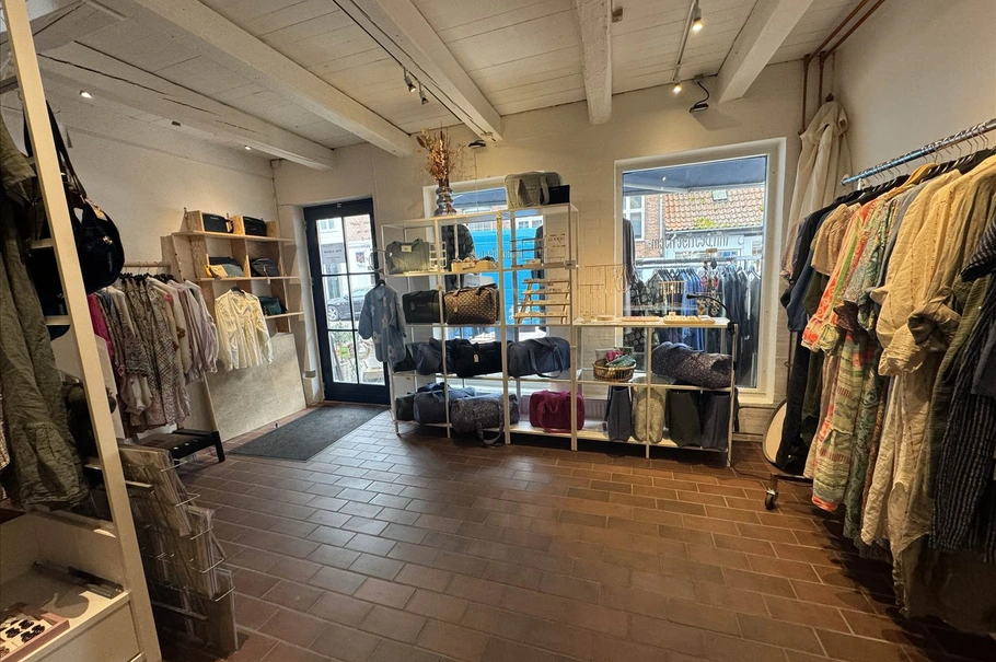 Lejemålet har indgang direkte til Vestergade og rummer et butiksareal på 104 m², fordelt på 2 etager – stuen og trappe til 1. sal. Der er et tekøkken og toiletfaciliteter bagers i lejemålet, samt bagindgang.
