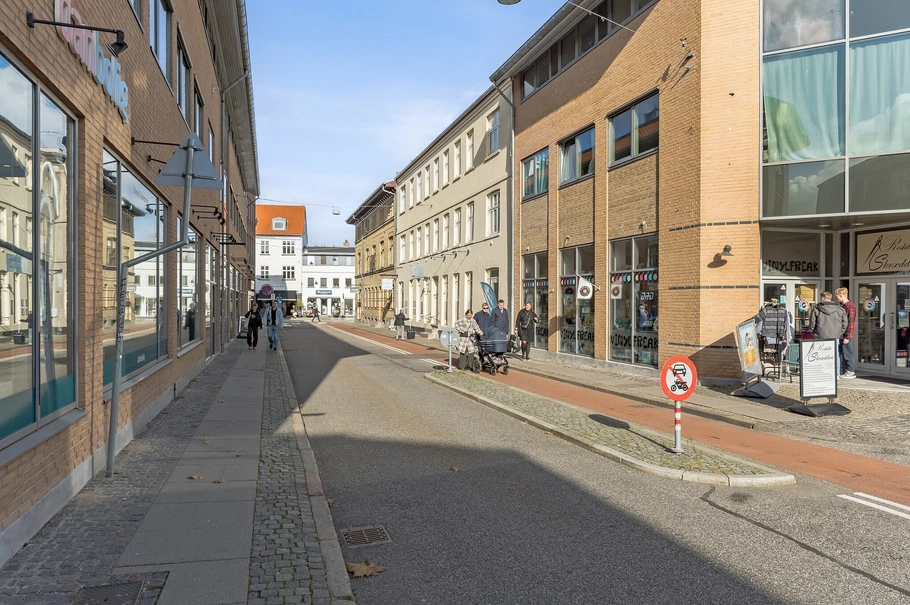 Lejemålet ligger centralt i forhold til byens handelsliv og der er en stor strøm af forbipasserende kunder.