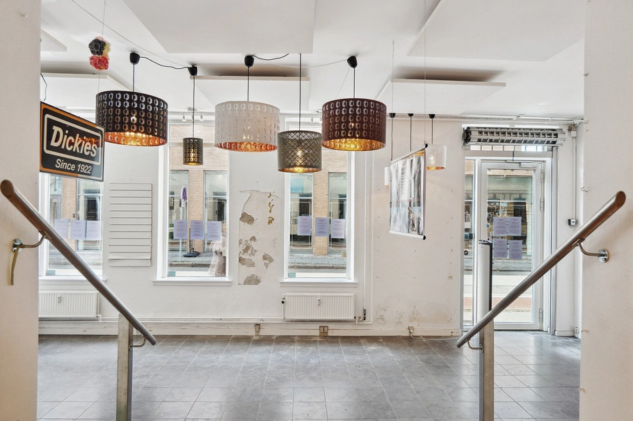 Lige midt i Roskilde finder man dette spændende indrettede lejemål med meget flot synlig facade med store vinduer.