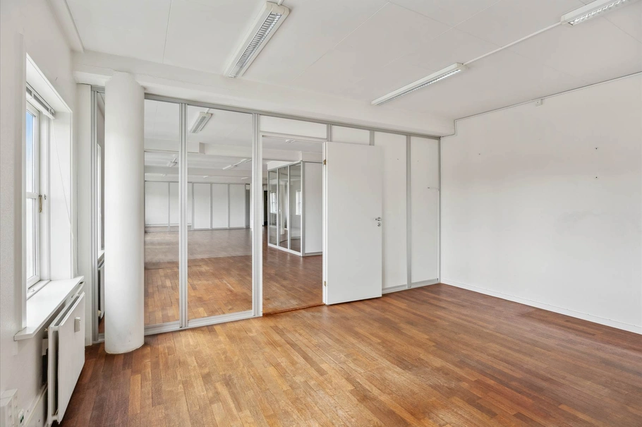 Ejendommen tilbyder fleksible lejemålsstørrelser, hvor der er mulighed for at leje enten 138 m², 188 m² eller samlet 326 m² kontorlokaler. Med en åben planløsning kan indretningen tilpasses efter lejernes behov, hvad enten der ønskes et stort fællesrum, mindre mødelokaler eller enkeltmandskontorer. Kontorlejemålet er udstyret med moderne faciliteter, herunder køkkenfaciliteter, elevator, adgang til toiletter og andet nødvendigt udstyr, der sikrer en komfortabel og effektiv arbejdsdag. Lejemålet har eget toilet, der er placeret lige ved opgangen.