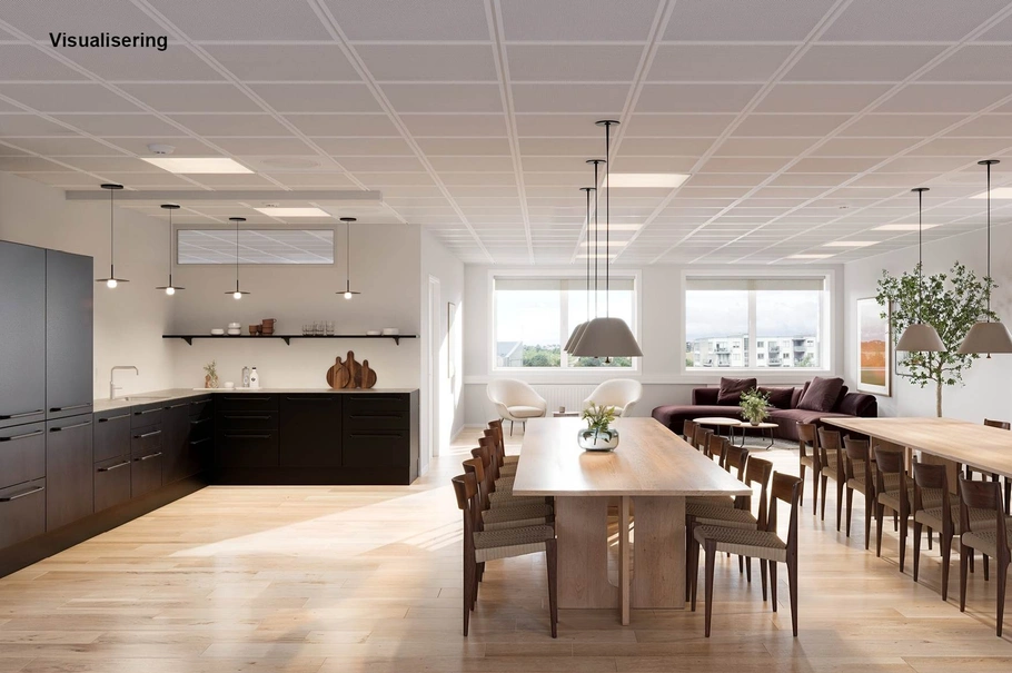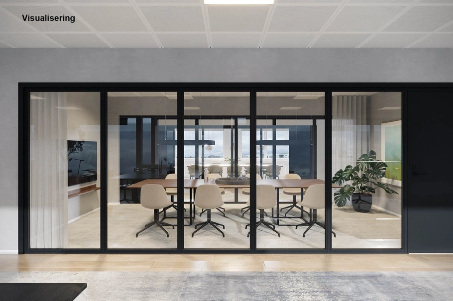 Lejemålet har således en naturlig belysning fra de store vinduer, som skaber en indbydende og behagelig atmosfære. Lejemålet er indrettet funktionelt, og består af et storrumskontor, 10 cellekontorer/mødelokaler i varierende størrelser, samt flere praktiske faciliteter, såsom et mindre tekøkken, toiletter, samt server- og kopirum. I ejendommens stueetage er der desuden fælles badefaciliteter, der deles med andre erhvervslejere i bygningen, hvilket yderligere forbedrer bekvemmeligheden.