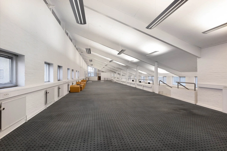 På øverste niveau er der stort åbent kontorfællesskab samt et enkelt mødelokale. På nederste niveau er der ligeledes åbent kontorlandskab, flere mødelokaler og enkelte kontorer Hele lejemålet fremstår lyst, pænt og velholdt og klar til indflytning. Foran lejemålet er en række parkeringspladser. Der vil være mulighed for at opdele lejemålet i mindre enheder eller eventuelt lave et kontorfællesskab med andre virksomheder.