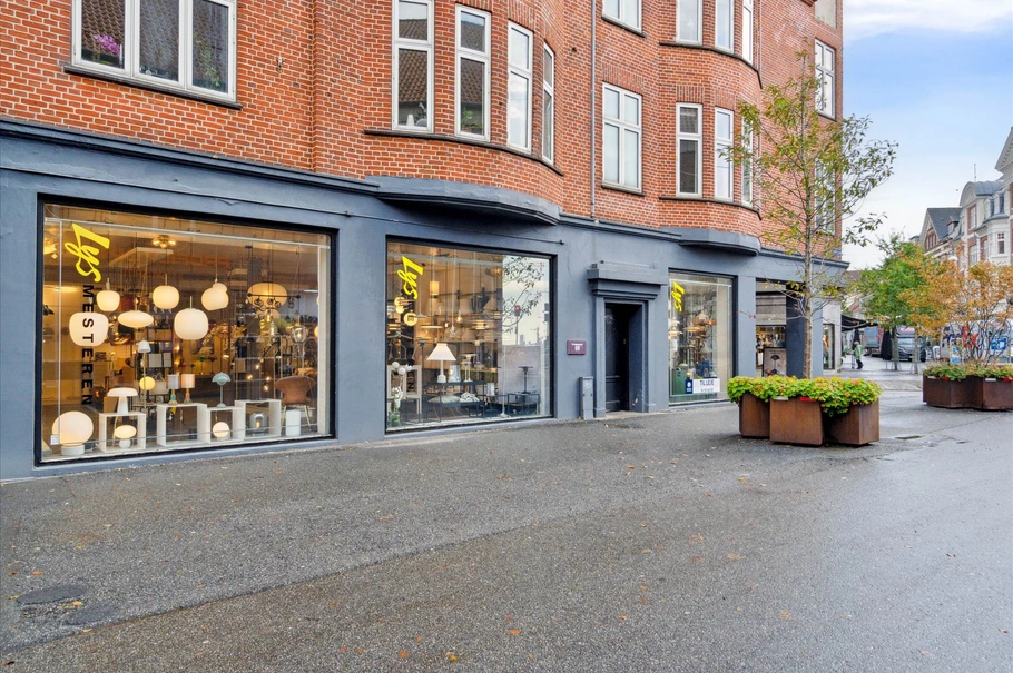 • God loftshøjde overalt (3 meter i butikken) og flotte lysindfald via store facadevinduer