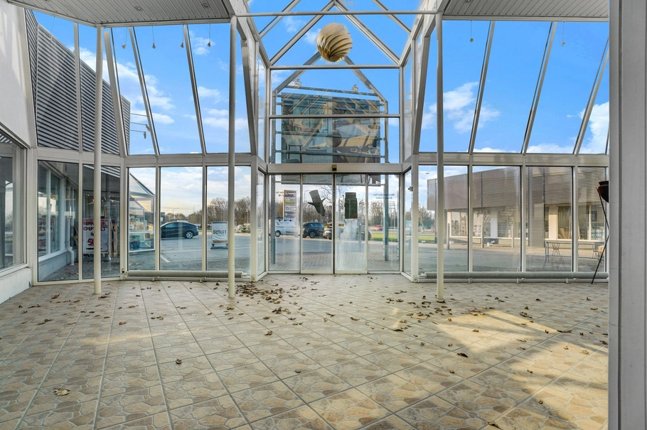 Lejemålet er i alt 783 m² og er i dag indrettet med et stort åbent lokale, der tilbyder alsidige muligheder for indretning og eksponering af din virksomhed. Yderligere faciliteter inkluderer en kantine, kontorlokaler og toiletter. De store vinduespartier sikrer ikke kun en lys og indbydende atmosfære, men også ideelle udstillingsmuligheder og en enestående synlighed til passerende trafik.
