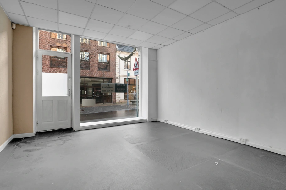 Lejemålet består af et flot butikslokale på ca. 52 m². Lokalet har en god loftshøjde, hvilket giver fleksible indretningsmuligheder. Det bagerste af butikslokalet er opført i 2016.