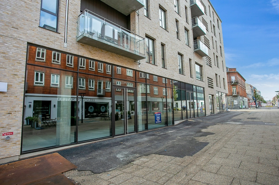 Butikkerne har alle en bred facade, store glaspartier fra gulv til loft og en optimal loftshøjde på 3,5 meter og med indgang i gadeniveau direkte fra Englandsgade.