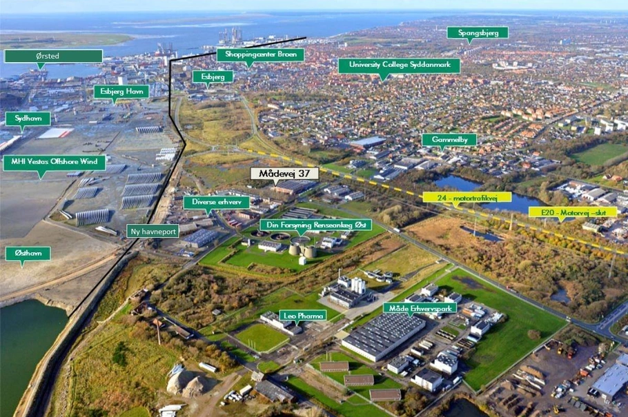 Måde er Esbjergs sydlige erhvervsområde og nabo til det nye havneområde til vindmølleindustrien.