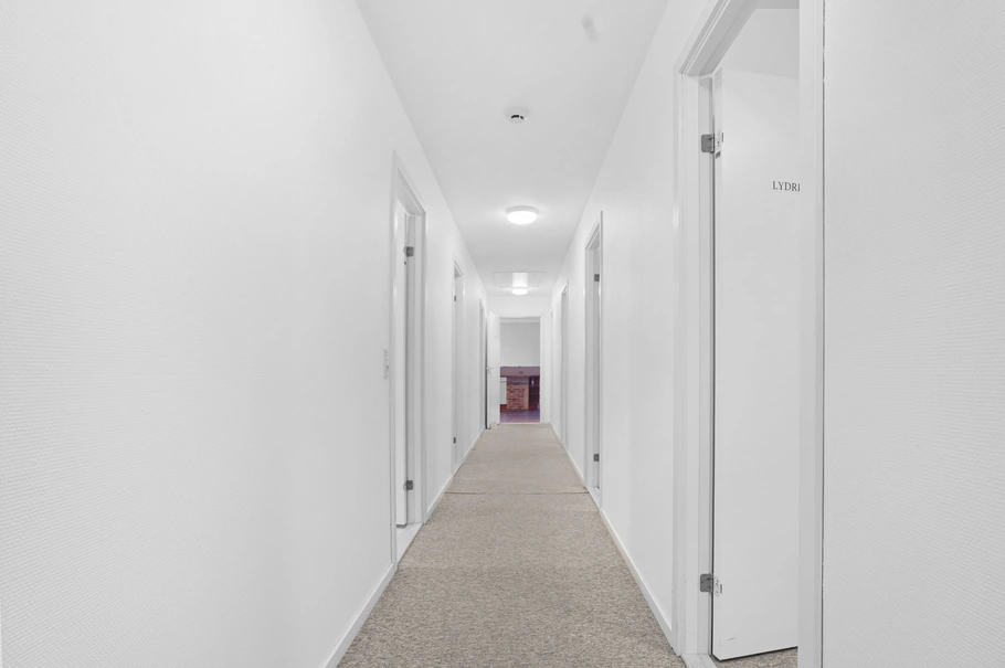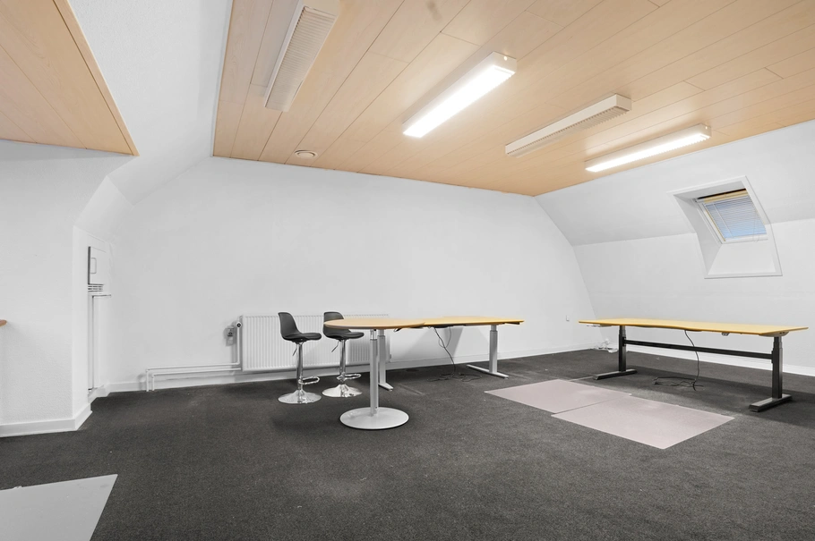 Lejemålet består af en masse små kontorer og et stort fælles kontor som også kan bruges som mødelokale. Ud over kontorene, er der også et fint køkken og to toiletter med badefaciliteter.