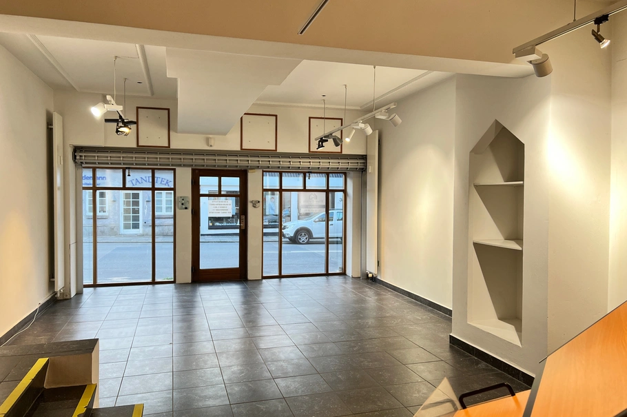 Lejemålet fremstår indbydende med store butiksvinduer, et stort rummeligt butikslokale samt et funktionelt køkken med tilstødende kontor/lager og egen bagindgang.