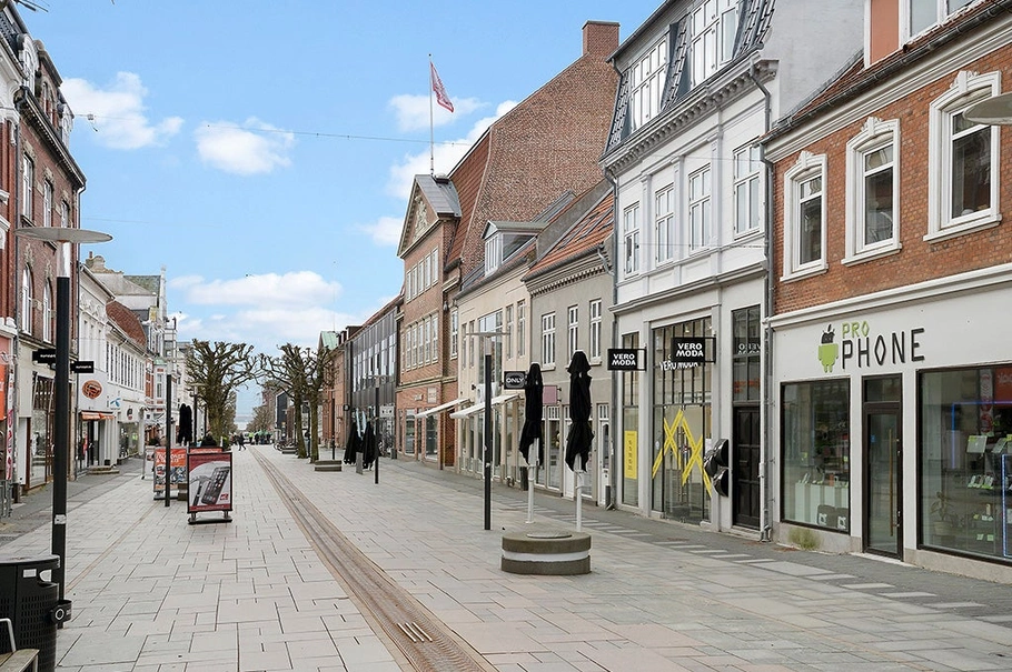 En af byens flotteste butikker, beliggende på byens mest attraktive gågade, udlejes.