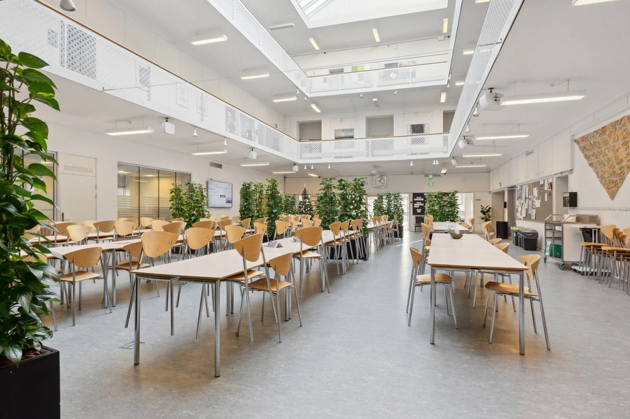 Selve ejendommen er indrettet til undervisning og kontor, og har en charmerende atriumgård, der skaber en rolig og inspirerende atmosfære. Ejendommen har elevator, hvilket sikrer nem adgang til alle etager, og kan dermed rumme forskellige typer virksomheder, uanset den fysiske mobilitet hos medarbejdere og gæster.