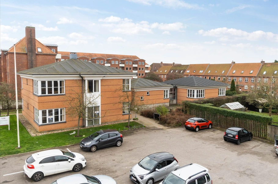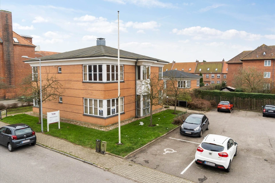 Denne ejendom ligger meget centralt placeret i Fredericia, ikke direkte ud til en stor indfaldsvej, men med gode tilkørselsveje fra bl.a. Vesterbrogade, som er en af de helt store indkørselsveje til Fredericia. Så direkte fra motorvejen og ind til denne flotte kontorbygning, ja her skal man kun dreje to gange. Ved lejemålet er der en lidt større offentlig parkeringsplads, i hele området kan man kantstensparkere, så der er generelt gode parkeringsforhold for kunderne. Derudover er der ved ejendommen parkeringspladser langs den østlige facade, disse parkeringspladser anvendes typisk af lejerne.
