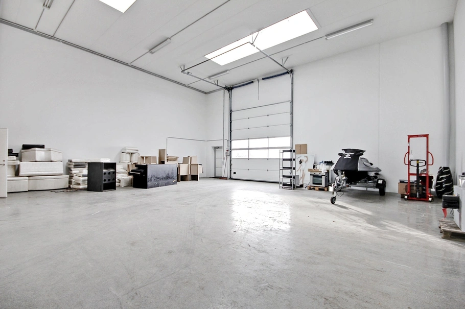 Lejemålet entreres via personaledør eller via stort indgangsparti i glas. Lagerlokalet er med flot epoxy gulv, store ovenlysvinduer, 7 meters loftshøjde og port bagerst i lokalet.