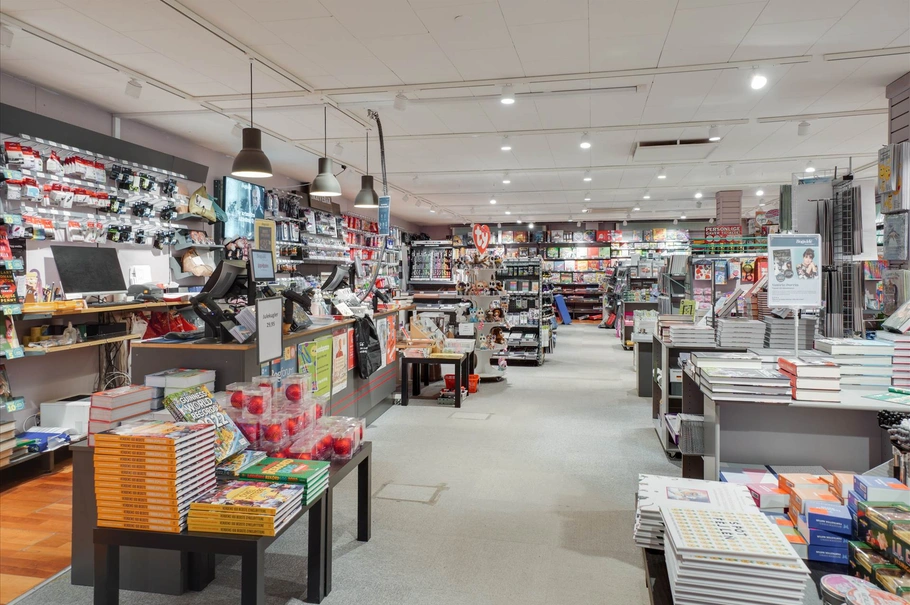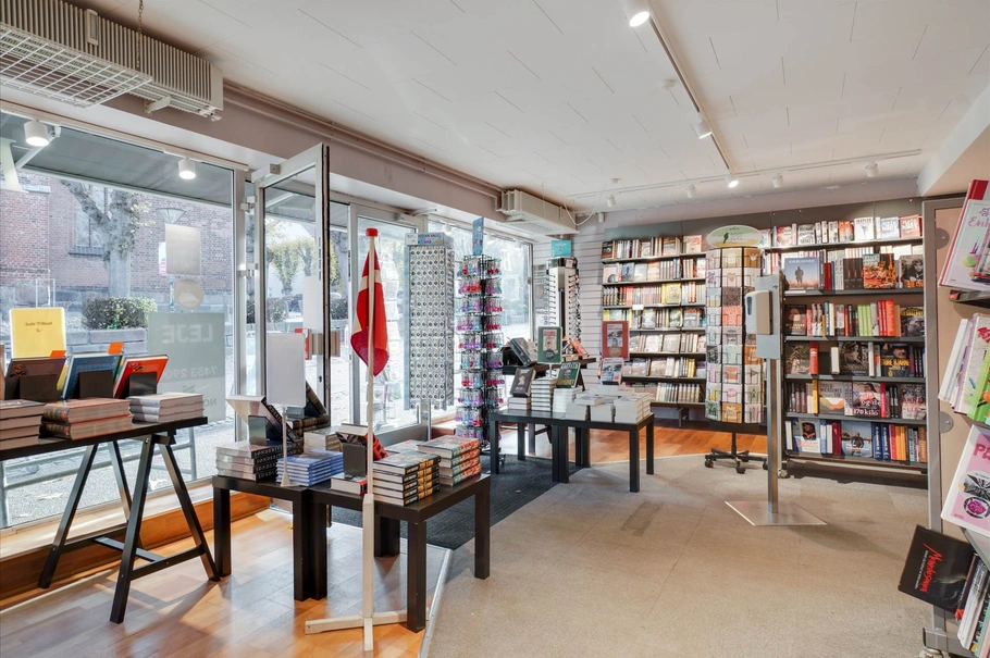 Lejemålet har tidligere været anvendt til boghandel, men kan anvendes til en lang række forskellige formål og butikker. Lejemålet er med niveaufri indgang direkte fra gågaden og indeholder stort lyst butikslokale med store glasfacader ud mod gågaden. Desuden baglokale samt et ekstra lille udstillingslokale ligeledes ud mod gågaden.