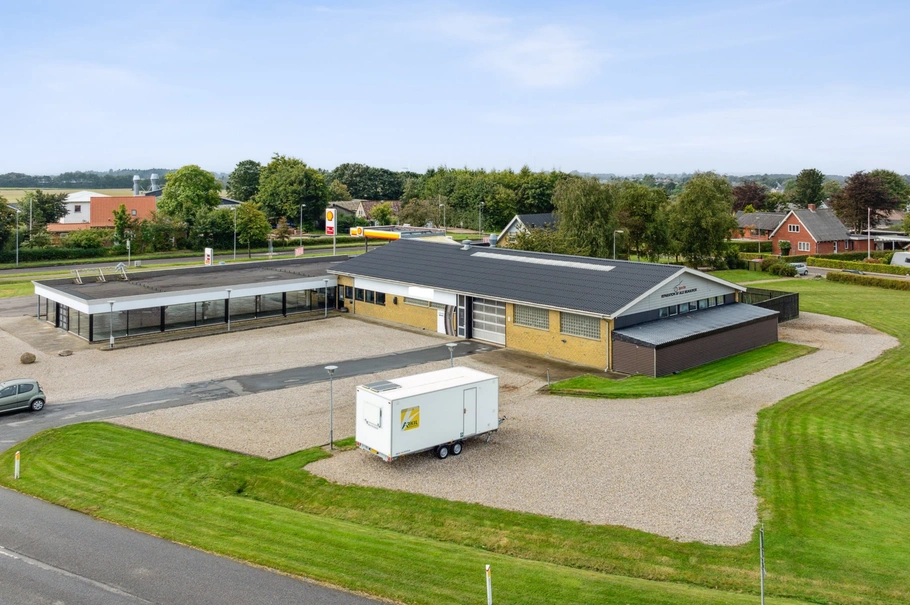 Med en størrelse på 885 m² er der rigeligt med plads til at udnytte alle kvadratmeter optimalt. Ejendommen består af et velholdt værksted med tilhørende mandskabsrum, der er klar til reparation og service af forskellige køretøjer, samt en udstillingsdel med tilhørende kontor.