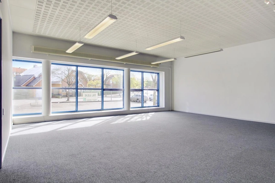 Lejemålet er indrettet med indgangsparti fra Torvet ind til stort lokale, videre ind til 5 erhvervslokaler og toiletter. Alle indvendige vægge er lette og vil med fordel kunne fjernes og herved få et åbent butiks- eller kontorlokale. Der er mulighed for at leje yderligere areal i kælderen, med gennemgang via indvendig trappe.