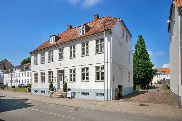 Lejemålet i arkitektonisk smuk ejendom med særdeles god beliggenhed 5 min. fra E45 og tæt på naturskønt område i centrum af Haderslev.
