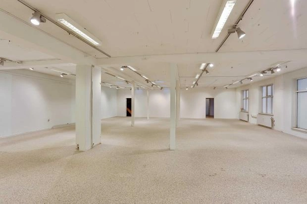 Lejemålet, der tidligere har været anvendt til boghandel, indeholder mod Vestergade Home ejendomsmæglerforretning samt dette lejemål på ca. 410 m², som vil kunne indrettes til kontor, træningscenter, lager mv. eller en kombination heraf. Der er en rampe med dobbeltdør bagved lejemålet til brug for vare ind-/udlevering samt nedgang til stor kælder. I kælderen er der mulighed for at leje ekstra lager/opbevaring. Derudover er der lokale til yderligere lager eller evt. personalerum, ligesom der er lille tekøkken og der er adgang til toilet.