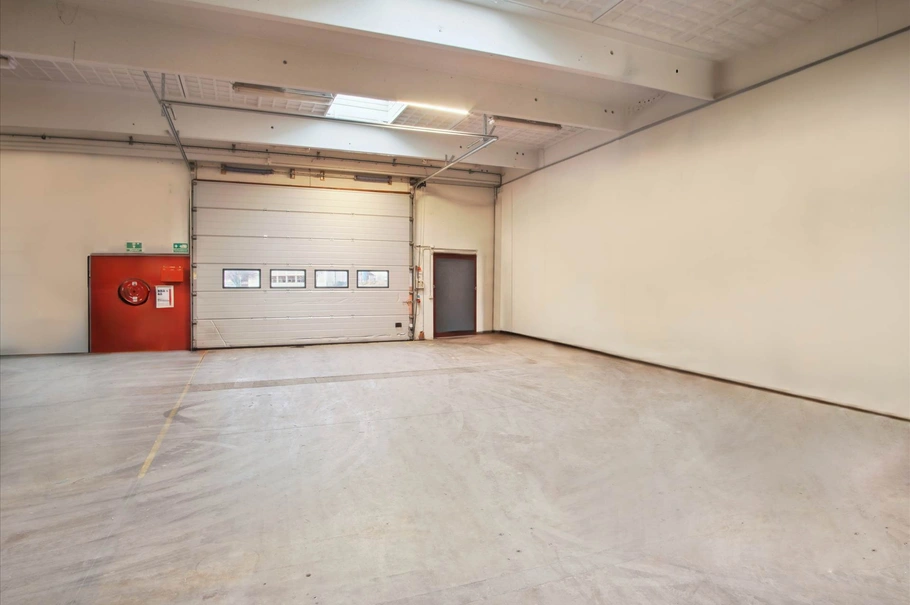Selve lagerlokalet er med højt til loftet og med et perfekt dagslys fra de mange ovenlysvinduer, der gør lokalet lyst og indbydende.