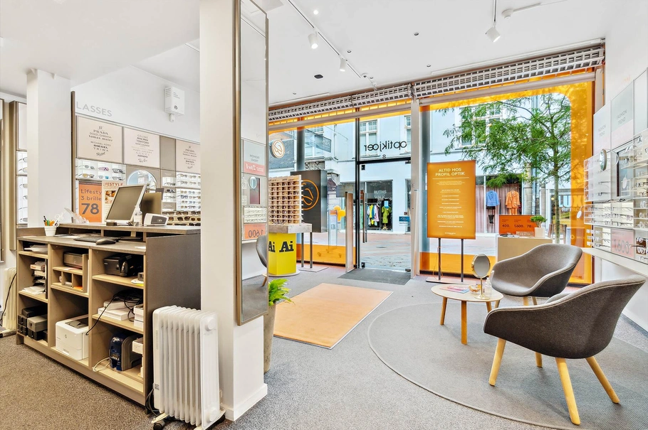 Dette butikslejemål på 128 m², med mulighed for at udvide til 248 m² ved tilleje af nabobutikken, har en lang historie som optikerbutik og tilbyder flotte rammer midt i Koldings charmerende gågader. Med en imponerende glasfacade på 6 meter og niveau fri adgang fra gaden, sikrer lejemålet stor synlighed og gode lysforhold. Faciliteter inkluderer et mindre personalerum, køkken og toilet.