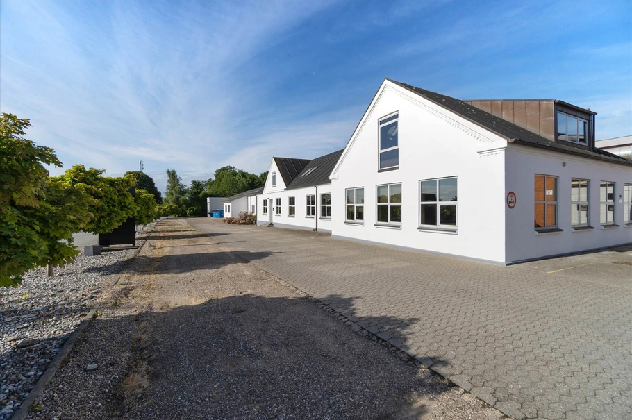 Lokalerne er beliggende i Bjert, i en større industriejendom, hvor denne bygning ligger for sig selv. Der er gode parkeringsmuligheder ved lejemålet både for medarbejdere og kunder.