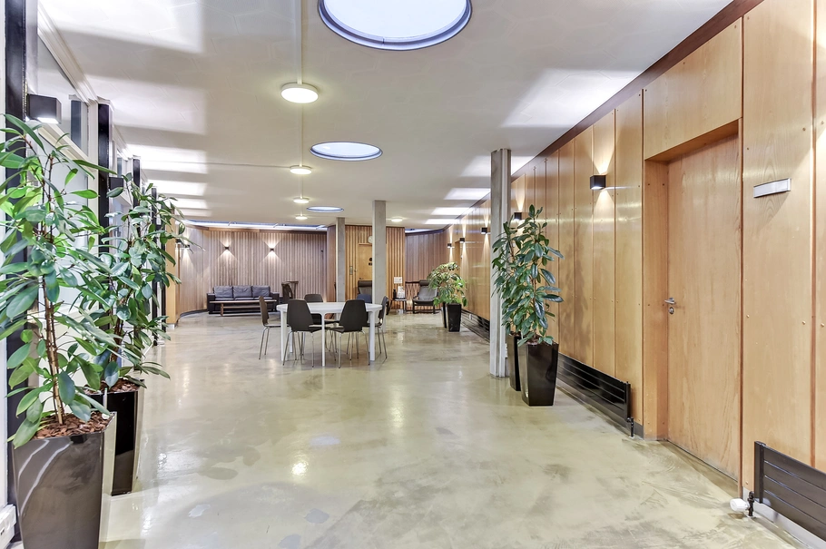 Selve lejemålet fremgår pænt og i en klassisk stil. Her er tale om et unikt og yderst spændende kontorlejemål, hvor man træder tilbage i tiden i de gamle direktionslokaler. Via flot indgangsparti træder man ind i større fællesområde med epoxygulv og træpaneler. Herudover er der adgang til fælles mødelokale, køkken samt herre- og dametoiletter.