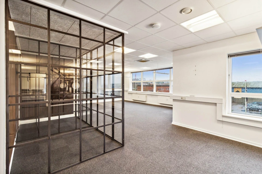 Flotte og velindrettede kontorlokaler på 455m² - fordelt med 135m² i stueetagen og 320m² på 2 sal. Pæne lyse lokaler med præsentabel indgang.