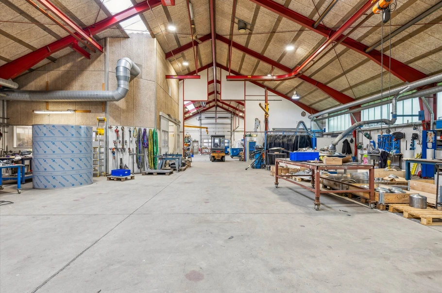 Lofter er beklædt med Troldtekt plader som giver en god akustik. Velholdte rå betongulve i begge haller, samt strålevarme i loftet. Gode lysforhold med flere ovenlysvinduer og relativ høje materede ruder i siderne på bygningerne. Flere porte i terræn, som giver gode ind- og udkørselsforhold fra de befæstede arealer.