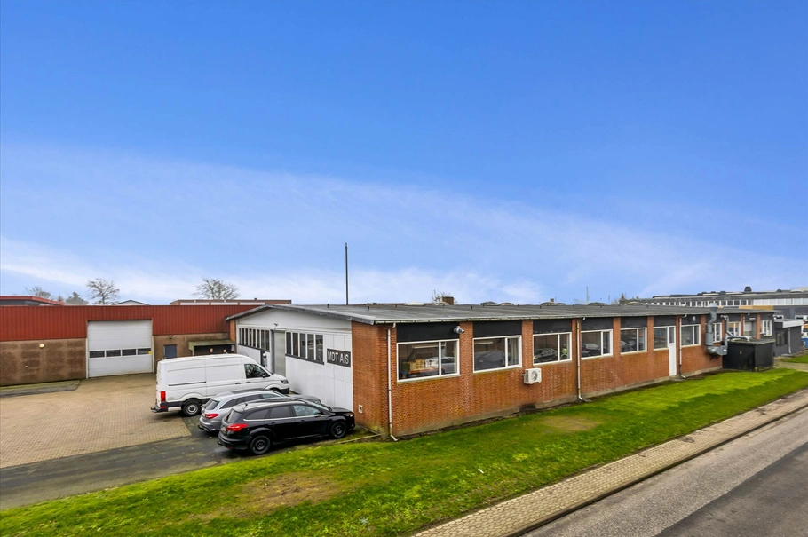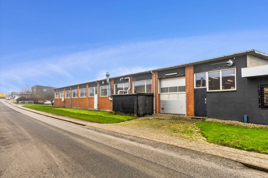 Indrettet med en stor hal samt mindre kontorafsnit, toiletter samt bad- og velfærd.