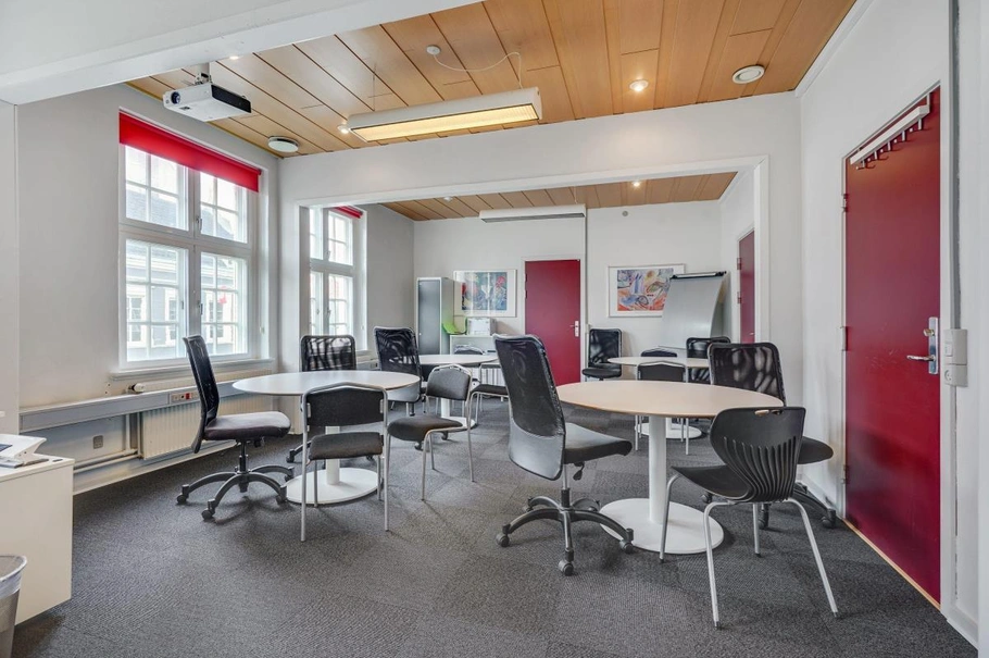 Lejemålet rummer i alt 304 m² fordelt ud på flere lokaler i varierende størrelser. Hertil kommer der køkken- og toiletfaciliteter. på 2. sal findes yderligere 287 m² kontorlokaler, som kan lejes.