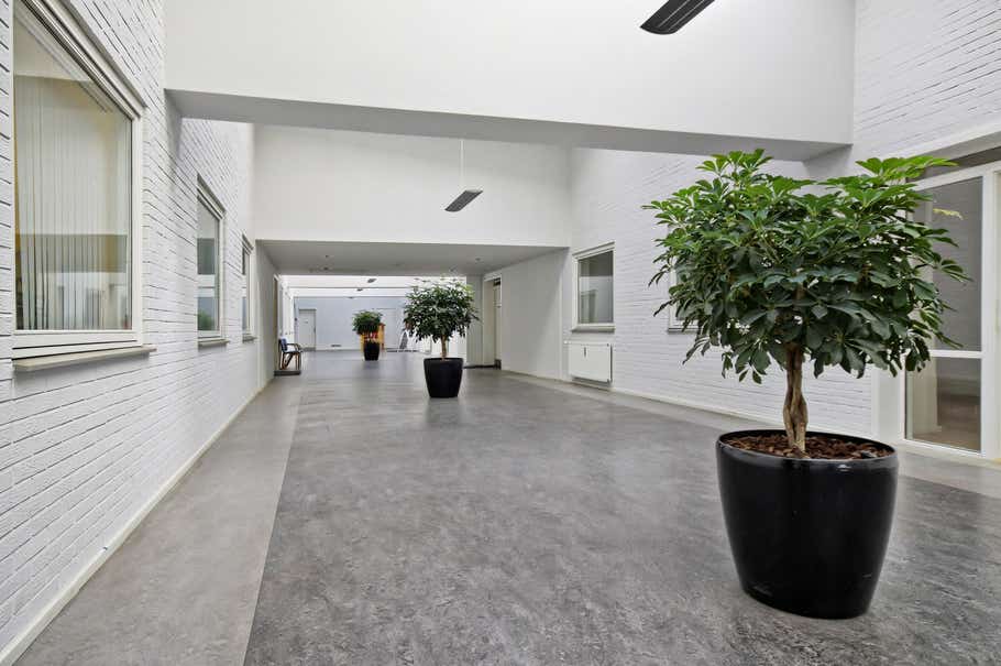 Hertil kommer fællesarealet, som består af en indbydende og præsentabel entré/gang og toiletfaciliteter. I ejendommen er der både trapper og elevator til 1. sal.