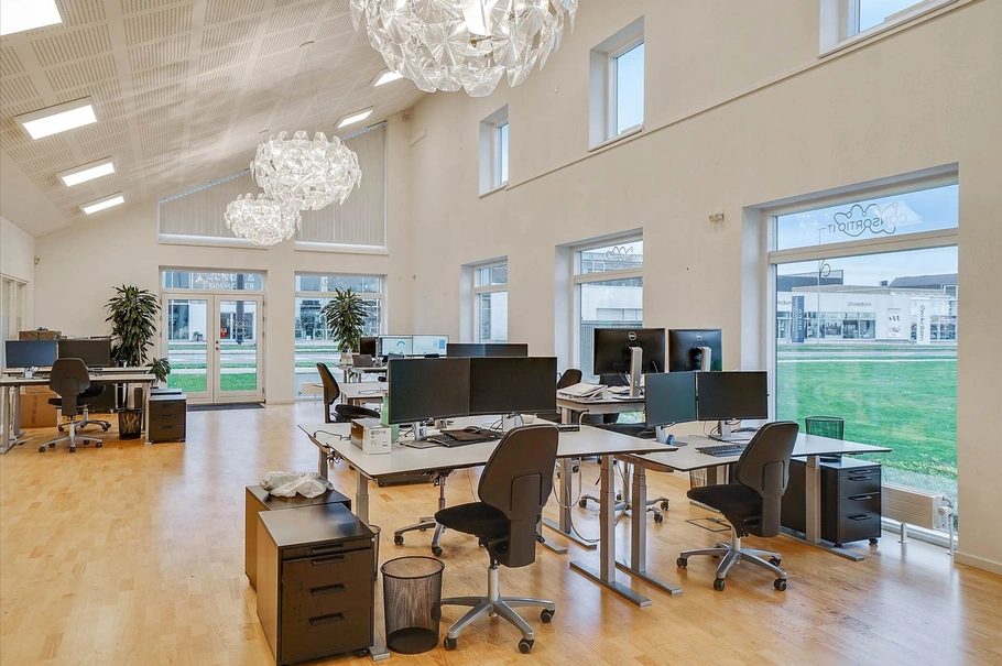 •Fælles arealer består af et stort kontorlandskab samt et mindre kontor/mødelokale