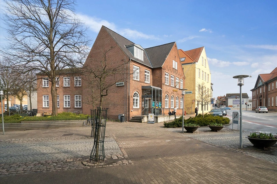 På 1. salen, i den smukke ejendom ved Jernbane Apoteket udbydes nu disse skønne kontorlokaler til leje. Den charmerende røde murstensejendom er fra 1925, med grå-sorte tagsten og hvide sprossede vinduer, fremstår særdeles velholdt. Der er tale om en af Sønderborgs mest markante ejendomme i bybilledet.