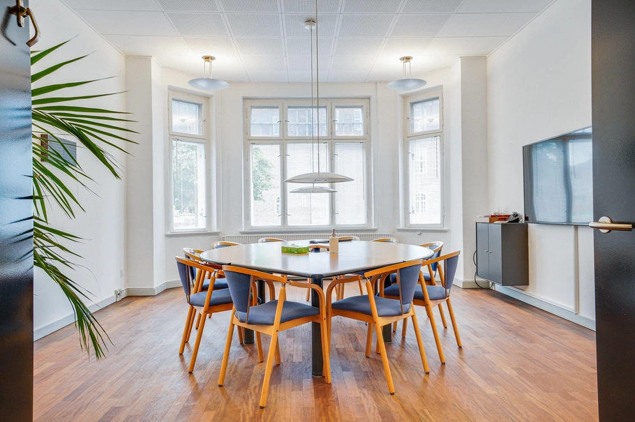 Lejemålet rummer i alt 838m², og er fordelt ud over kontorfællesskab, enkeltmandskontorer, mødelokaler, køkken og toiletfaciliteter. Et lejemål som kan udnyttes til en lang række typer af liberale erhverv.